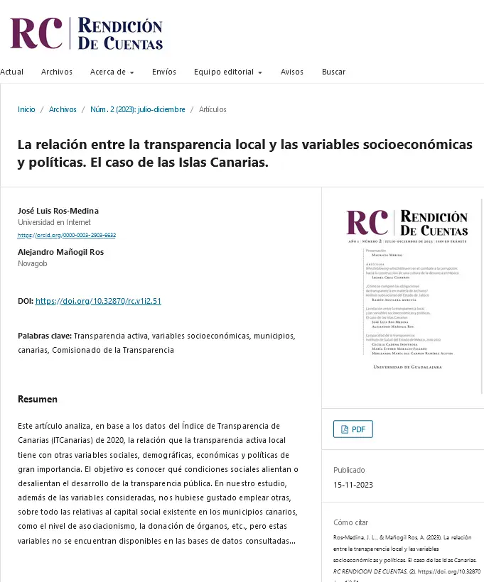 La relación entre la transparencia local y las variables socioeconómicas y políticas. El caso de las Islas Canarias.